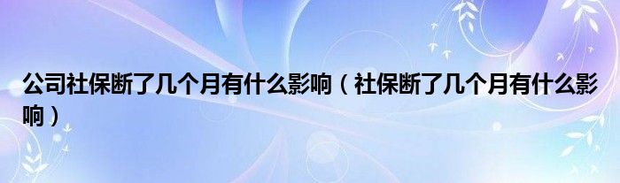 关于公司社保断了几个月有什么影响,社保断了几个月有什么影响这个很多人还不知道,今天菲菲来为大家解答以上的问题,现在让我们一起来看看吧!