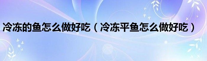 关于冷冻的鱼怎么做好吃,冷冻平鱼怎么做好吃这个很多人还不知道,今天菲菲来为大家解答以上的问题,现在让我们一起来看看吧!