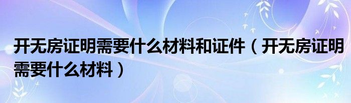 关于开无房证明需要什么材料和证件,开无房证明需要什么材料这个很多人还不知道,今天菲菲来为大家解答以上的问题,现在让我们一起来看看吧!