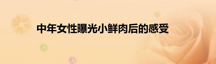 关于中年女性曝光小鲜肉后的感受这个很多人还不知道,今天菲菲来为大家解答以上的问题,现在让我们一起来看看吧!