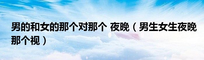 关于男的和女的那个对那个 夜晚,男生女生夜晚那个视这个很多人还不知道,今天菲菲来为大家解答以上的问题,现在让我们一起来看看吧!