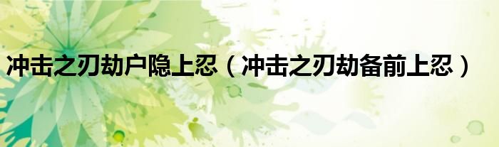 冲击之刃劫户隐上忍(冲击之刃劫备前上忍)