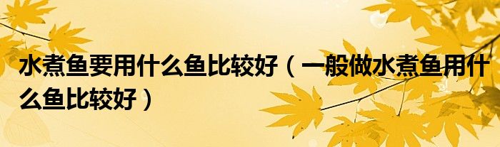 水煮鱼要用什么鱼比较好(一般做水煮鱼用什么鱼比较好)