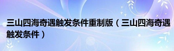 大家好,小晋来为大家解答以下问题,关于三山四海奇遇触发条件重制版,三山四海奇遇触发条件很多人还不知道,今天让我们一起来看看吧!