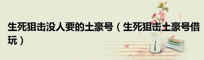 关于生死狙击没人要的土豪号,生死狙击土豪号借玩这个很多人还不知道,今天菲菲来为大家解答以上的问题,现在让我们一起来看看吧!