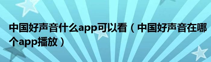 中国好声音什么app可以看(中国好声音在哪个app播放)