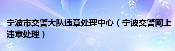 宁波市交警大队违章处理中心(宁波交警网上违章处理)