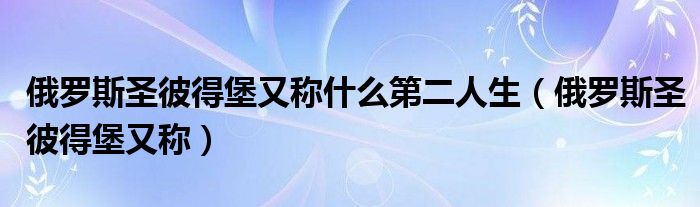 大家好,小晋来为大家解答以下问题,关于俄罗斯圣彼得堡又称什么第二人生,俄罗斯圣彼得堡又称很多人还不知道,今天让我们一起来看看吧!