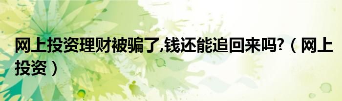 关于网上投资理财被骗了,钱还能追回来吗?,网上投资这个很多人还不知道,今天菲菲来为大家解答以上的问题,现在让我们一起来看看吧!