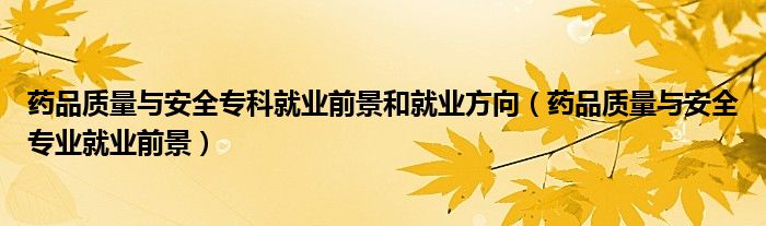 药品质量与安全专科就业前景和就业方向(药品质量与安全专业就业前景)