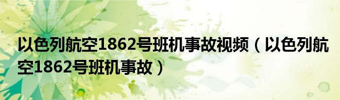 关于以色列航空1862号班机事故视频,以色列航空1862号班机事故这个很多人还不知道,今天菲菲来为大家解答以上的问题,现在让我们一起来看看吧!