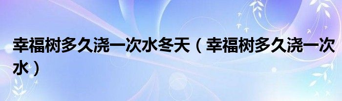 关于幸福树多久浇一次水冬天,幸福树多久浇一次水这个很多人还不知道,今天菲菲来为大家解答以上的问题,现在让我们一起来看看吧!