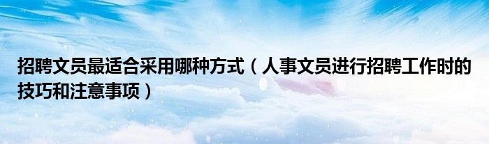 关于招聘文员最适合采用哪种方式,人事文员进行招聘工作时的技巧和注意事项这个很多人还不知道,今天菲菲来为大家解答以上的问题,现在让我们一起来看看吧!