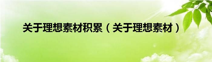 关于关于理想素材积累,关于理想素材这个很多人还不知道,今天菲菲来为大家解答以上的问题,现在让我们一起来看看吧!