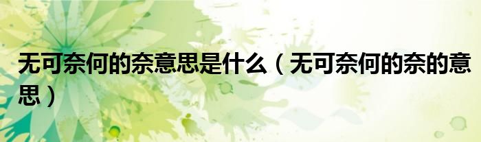 关于无可奈何的奈意思是什么,无可奈何的奈的意思这个很多人还不知道,今天菲菲来为大家解答以上的问题,现在让我们一起来看看吧!