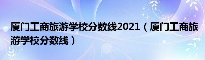 关于厦门工商旅游学校分数线2021,厦门工商旅游学校分数线这个很多人还不知道,今天菲菲来为大家解答以上的问题,现在让我们一起来看看吧!