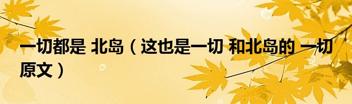 关于一切都是 北岛,这也是一切 和北岛的 一切 原文这个很多人还不知道,今天菲菲来为大家解答以上的问题,现在让我们一起来看看吧!