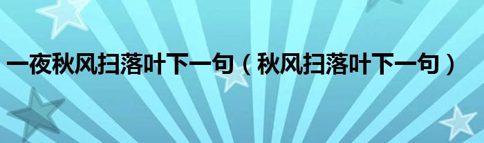 关于一夜秋风扫落叶下一句,秋风扫落叶下一句这个很多人还不知道,今天菲菲来为大家解答以上的问题,现在让我们一起来看看吧!