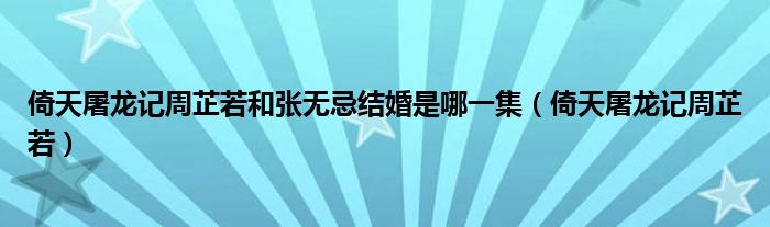 关于倚天屠龙记周芷若和张无忌结婚是哪一集,倚天屠龙记周芷若这个很多人还不知道,今天菲菲来为大家解答以上的问题,现在让我们一起来看看吧!