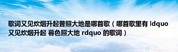 关于歌词又见炊烟升起普照大地是哪首歌,哪首歌里有 ldquo 又见炊烟升起 暮色照大地 rdquo 的歌词这个很多人还不知道,今天菲菲来为大家解答以上的问题,现在让我们一起来看看吧!