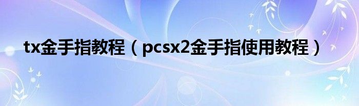 tx金手指教程(pcsx2金手指使用教程)