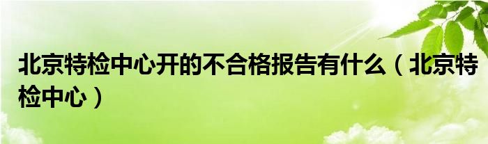 北京特检中心开的不合格报告有什么(北京特检中心)