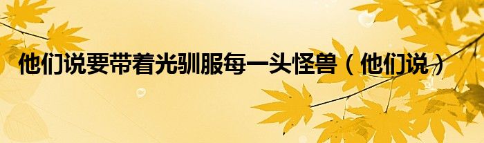 关于他们说要带着光驯服每一头怪兽,他们说这个很多人还不知道,今天菲菲来为大家解答以上的问题,现在让我们一起来看看吧!