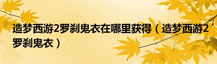 造梦西游2罗刹鬼衣在哪里获得(造梦西游2罗刹鬼衣)