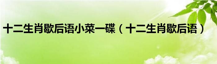 关于十二生肖歇后语小菜一碟,十二生肖歇后语这个很多人还不知道,今天菲菲来为大家解答以上的问题,现在让我们一起来看看吧!