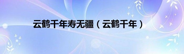 关于云鹤千年寿无疆,云鹤千年这个很多人还不知道,今天菲菲来为大家解答以上的问题,现在让我们一起来看看吧!