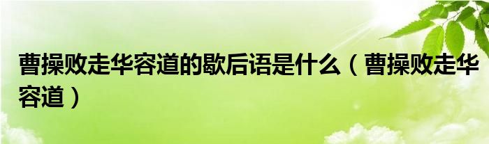关于曹操败走华容道的歇后语是什么,曹操败走华容道这个很多人还不知道,今天菲菲来为大家解答以上的问题,现在让我们一起来看看吧!