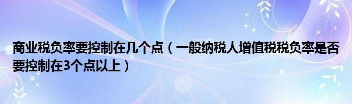 商业税负率要控制在几个点(一般纳税人增值税税负率是否要控制在3个点以上)