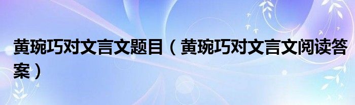 黄琬巧对文言文题目(黄琬巧对文言文阅读答案)