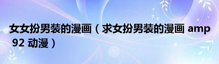 关于女女扮男装的漫画,求女扮男装的漫画 amp 92 动漫这个很多人还不知道,今天菲菲来为大家解答以上的问题,现在让我们一起来看看吧!