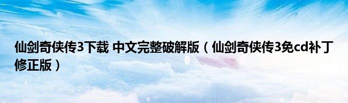 仙剑奇侠传3下载 中文完整破解版(仙剑奇侠传3免cd补丁修正版)