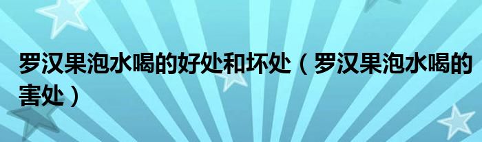 关于罗汉果泡水喝的好处和坏处,罗汉果泡水喝的害处这个很多人还不知道,今天菲菲来为大家解答以上的问题,现在让我们一起来看看吧!
