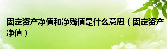关于固定资产净值和净残值是什么意思,固定资产净值这个很多人还不知道,今天菲菲来为大家解答以上的问题,现在让我们一起来看看吧!