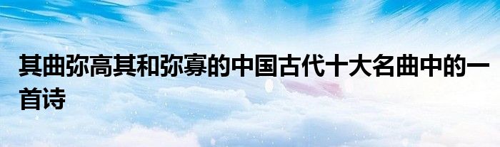 关于其曲弥高其和弥寡的中国古代十大名曲中的一首诗这个很多人还不知道,今天菲菲来为大家解答以上的问题,现在让我们一起来看看吧!