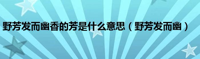 野芳发而幽香的芳是什么意思(野芳发而幽)