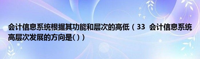 会计信息系统根据其功能和层次的高低(33 会计信息系统高层次发展的方向是( ))