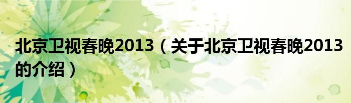 北京卫视春晚2013(关于北京卫视春晚2013的介绍)