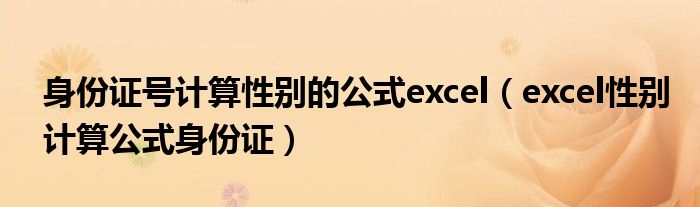 身份证号计算性别的公式excel(excel性别计算公式身份证)