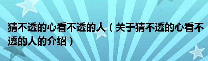 猜不透的心看不透的人(关于猜不透的心看不透的人的介绍)