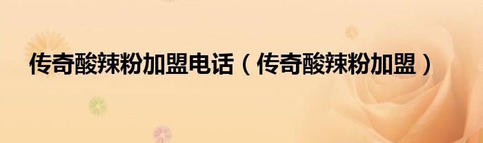 关于传奇酸辣粉加盟电话,传奇酸辣粉加盟这个很多人还不知道,今天菲菲来为大家解答以上的问题,现在让我们一起来看看吧!