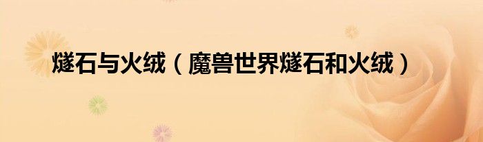 燧石与火绒(魔兽世界燧石和火绒)