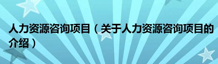 人力资源咨询项目(关于人力资源咨询项目的介绍)