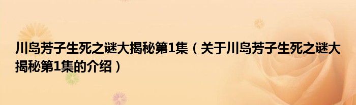 大家好,今天小乐来为大家解答以上的问题。川岛芳子生死之谜大揭秘第1集,关于川岛芳子生死之谜大揭秘第1集的介绍很多人还不知道,现在让我们一起来看看吧!