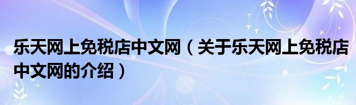 乐天网上免税店中文网(关于乐天网上免税店中文网的介绍)