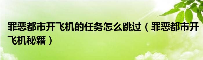 罪恶都市开飞机的任务怎么跳过,罪恶都市开飞机秘籍很多人还不知道,乐乐来为大家解答以上问题,现在让我们一起来看看吧!