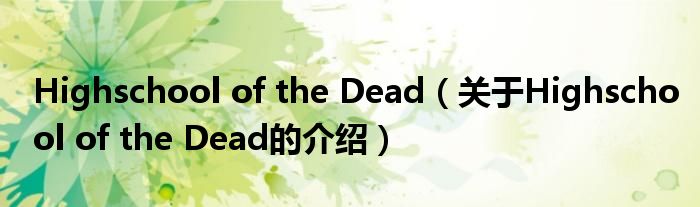 Highschool of the Dead(关于Highschool of the Dead的介绍)